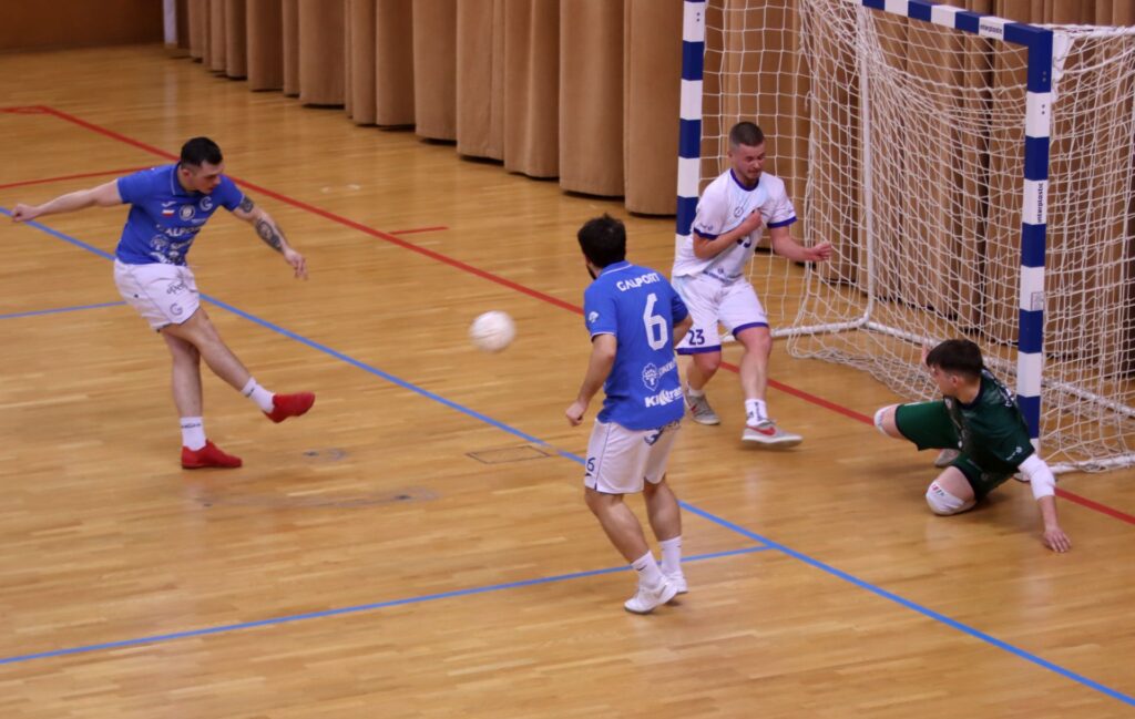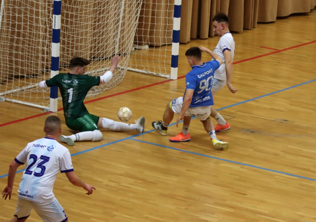 Hitowe starcie nie rozczarowało, choć obrońca trofeum nie przystąpił do niego w optymalnym zestawieniu. Zabrakło piłkarzy z Dragona Bojano, a także Dominika Nebaka oraz zawieszonego na trzy mecze za ostatni wybryk Jakuba Adamczyka. W składzie Galportu znaleźli się Lyubomir Kolomychuk (drugi raz w tym sezonie) i gość Bartłomiej Tkacz. Zabrakło za to Macieja Śliwińskiego, ważnego ogniwa zespołu. Pierwsza połowa to duża dominacja graczy Galportu, którzy raz po raz zatrudniali Grzegorza Okuniewskiego. Ten w całym spotkaniu obronił 20 strzałów, z czego większość do przerwy. Nie zdołali go zaskoczyć m.in. Wojciech Węgrzyn, Tkacz czy Kamil Domański. Haber Team nastawił się na grę z kontry. Pierwszy celny strzał oddał dopiero w 8. min. (Maciej Słupecki). Później formę Fabiana Hillera sprawdził też Wiktor Pokorowski i Adrian Wróblewski. Na 90 sekund przed przerwą Przemysław Modrzyński sfaulował w „6” Wojciecha Węgrzyna i sędziowie podyktowali rzut karny. Tego wykorzystał Damian Stasikowski i po kwadransie gry było 1:0 dla Galportu.